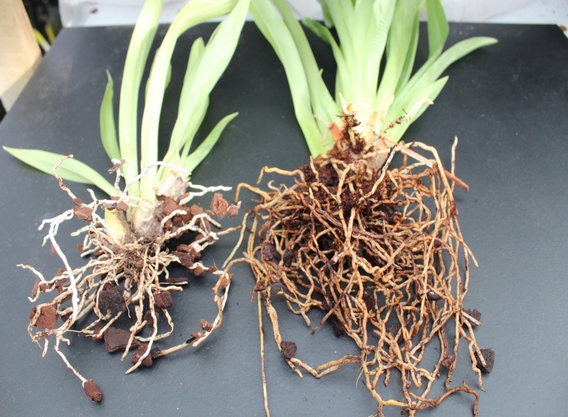 Now for the real test, removal and exposure of the plant root structure. They say a photo speaks a thousand words, along with seeing is believing. The plant on the left was in bark pumice mix while the plant on the right was in Fern Fibre substrate. I my view there is only one positive result.